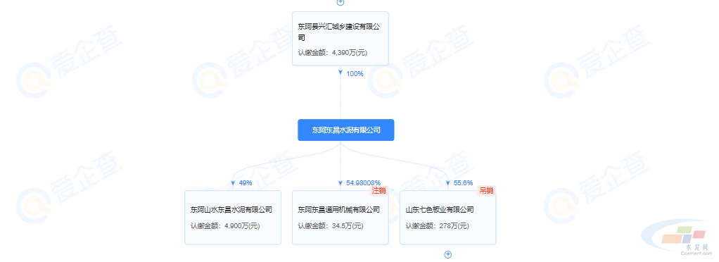 股权结构显示,东阿东昌水泥有限公司为东阿县兴汇城乡建设有限公司全资子公司。