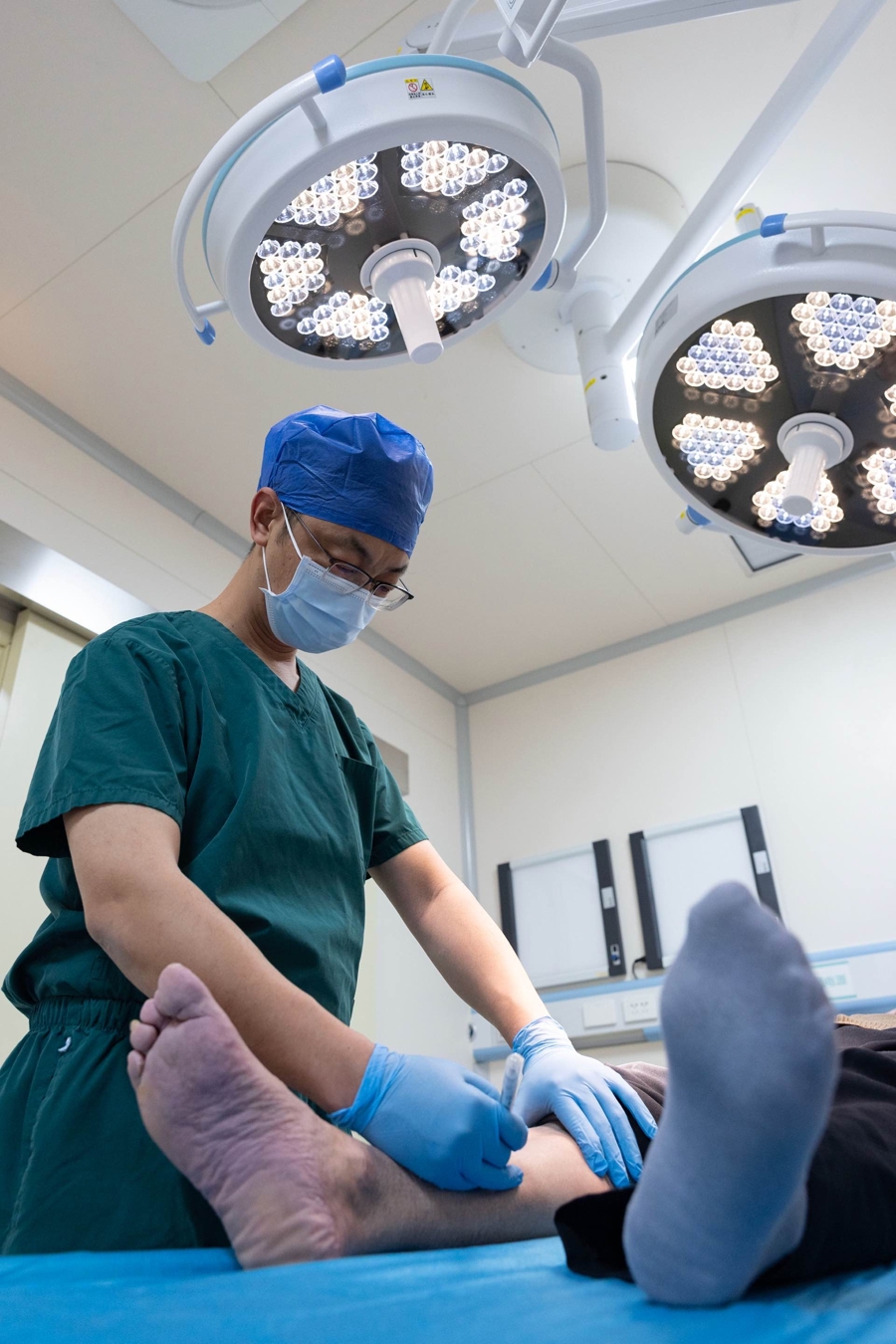 居民王阿伯,患有严重的双侧下肢静脉曲张,并发多处下肢静脉溃疡,数年不愈,苦不堪言,他是打浦桥社区卫生服务中心“忠粉”,看到社区新开血管外科专病门诊,慕名而来,根据医生评估后,制定了个体化治疗方案,同时予以绿色通道“直达”九院血管外科,开展下肢静脉曲张射频消融及剥脱手术。手术完成后,又转回打浦桥社区卫生服务中心,继续创面治疗。社区医护还为王老伯开展下肢压力治疗结合富血小板血浆疗法,如今老人的双下肢巨大溃疡已基本愈合,逢人便夸,“小医院也能解决大问题!”