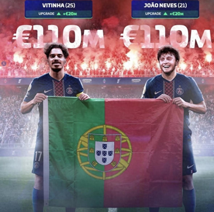 维蒂尼亚与若昂内维斯是风格完全不同的中场,其中25岁的维蒂尼亚是技术流、控场型球员,脚下细腻,控球盘带能力强,擅长组织梳理,还有一脚远射。而21岁的若昂内维斯是B2B中场,攻守兼备,防守硬朗,有“白色坎特”的意思,还有前插进球能力,本赛季已2次戴帽,曾在1场比赛中完成2次倒钩进球。